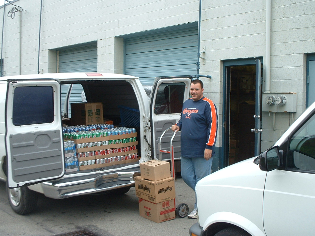 Jim loads one of the vans for the day's